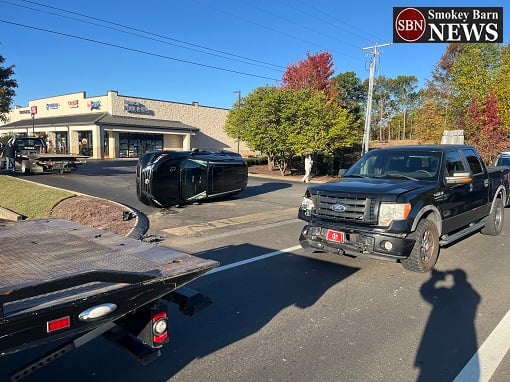 WHITE HOUSE, TENNESSEE: (Smokey Barn News) – Raymond Hirsch Parkway in White House was partially blocked following a rollover crash Wednesday morning, the first call coming in to 911 at 7:59 AM.
